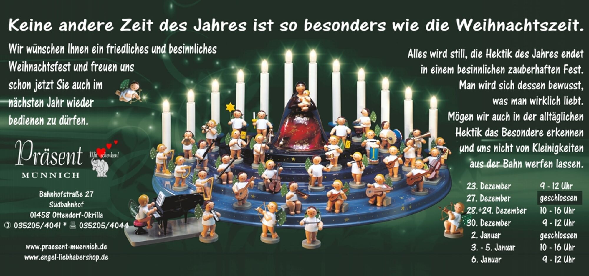 19.04.2025 30 elefantenstarke Jahre Wir feiern 30 elefantenstarke Jahre von PRÄSENT Münnich mit einer Sonderfigur - ein Weihnachtsmann mit einem Elefanten auf dem Schlitten.