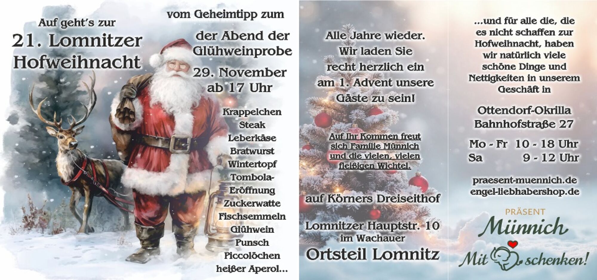 21. Lomnitzer Hofweihnacht Wir, und die vielen, vielen fleißigen Wichtel laden Sie recht herzlich ein zur nunmehr 21. Lomnitzer Hofweihnacht unser Gast auf unserem Hof im Wachauer Ortsteil Lomnitz zu sein.