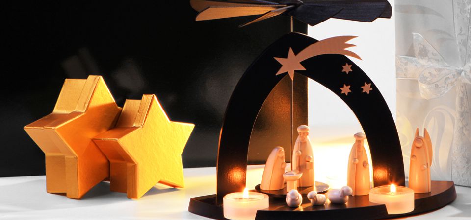 Ganz neue Wege beschreiten Schalling´s mit der Fertigung der Designerkrippe des Holzgestalters Günter Schwoboda. Im Zusammenspiel von Holz und Form werden eindrucksvoll die biblischen Ereignisse im Zusammenhang mit der Christgeburt dargestellt. Passend zu den Figuren werden schwarze und naturbelassene Pyramiden gefertigt.